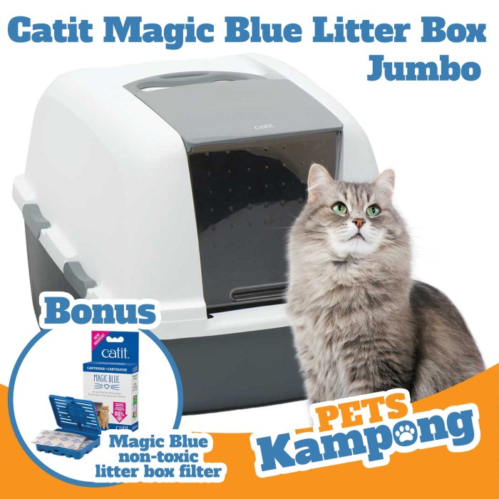 Jual Petkam024 Bak Pasir Kucing Catit Hooded Litter Box Magic Blue Filter Jumbo 44071 Indonesia Shopee Indonesia