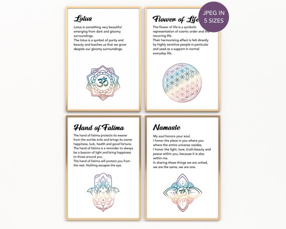 Poster Meaning Flower Of Life Lotus Hand Of Fatima Namaste Etsy